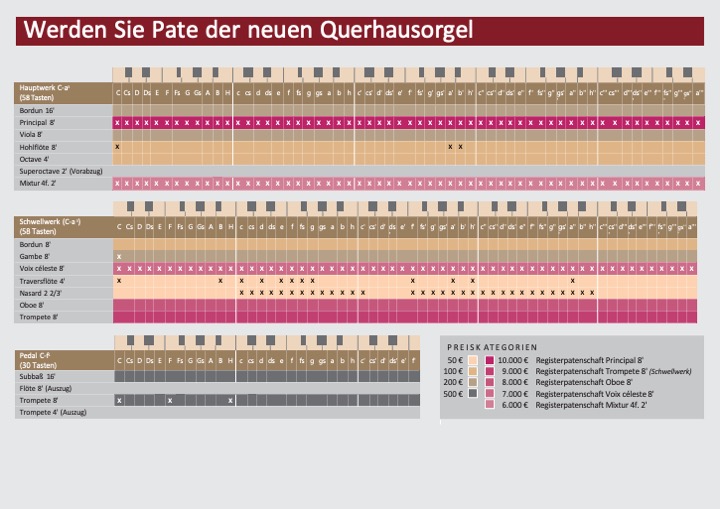 Mit Ihrem ganz persönlichen Ton können Sie Teil der neuen Querhausorgel in unserer Basilika sein. Patenschaften gibt es bereits ab 50 €. Sie lassen sich auch verschenken – z.B. zu Taufe, Kommunion Firmung, Geburtstag oder Hochzeit. Jede Patenschaft ermöglicht es, einen bleibenden, emotionalen Wert an unserer neuen Orgel zu erwerben.